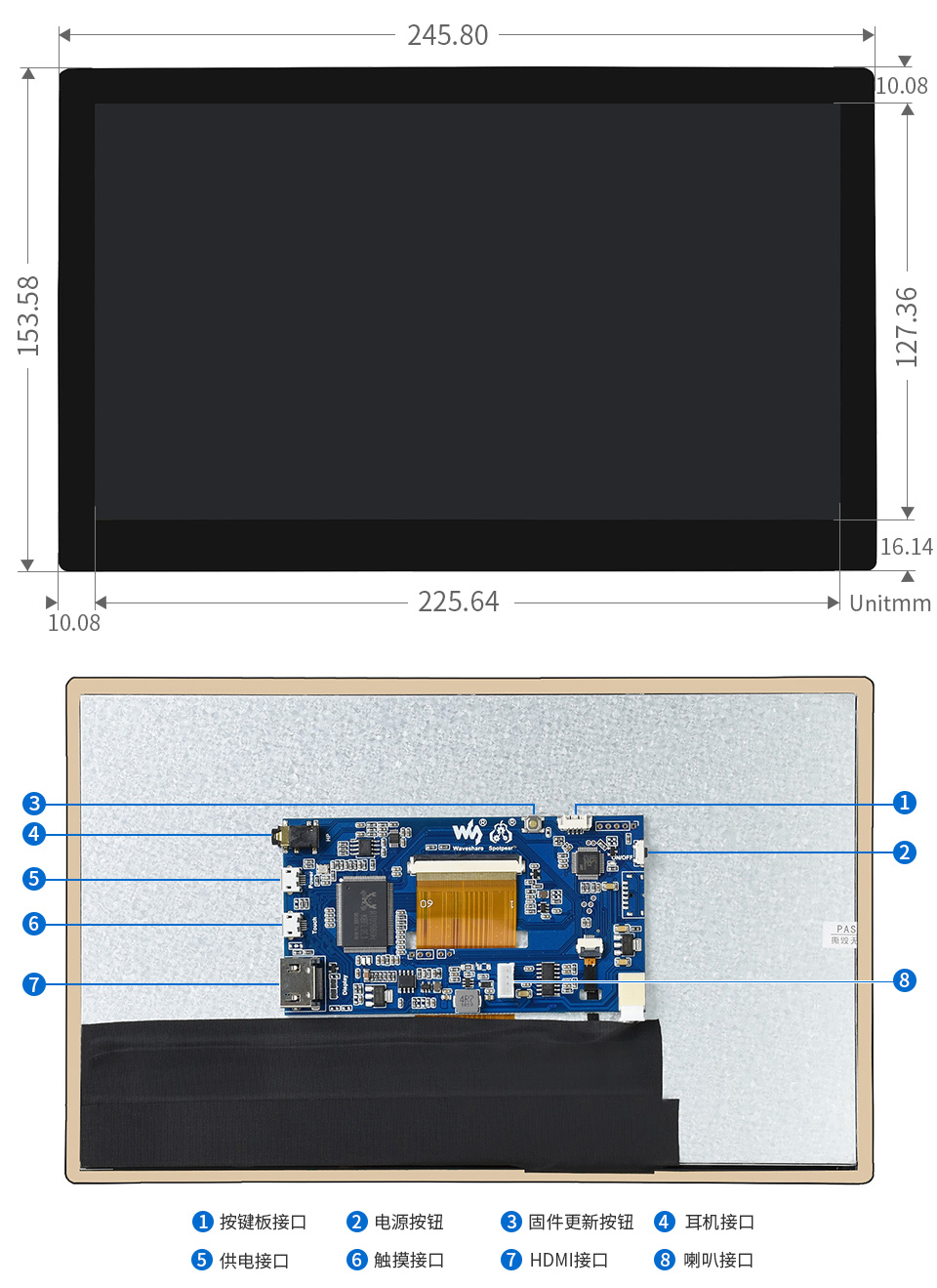| 5DP-CAPLCD-B | 1024×600 | HDMI | IPS | 178° | 电容 | Type-C | 钢化玻璃 | √ | - | √ | √ | √ | √ |