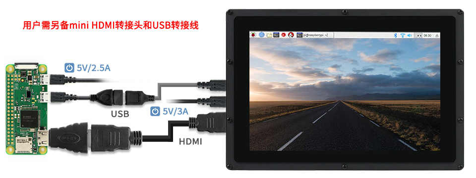 | 5inch HDMI LCD (B) (带外壳) | 800×480 | HDMI | TFT | - | 电阻 | USB | - | - | - | - | √ | - | √ |