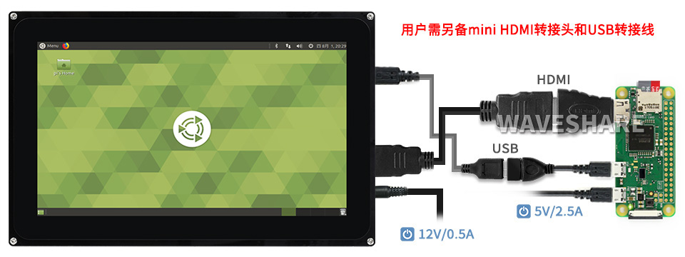 | 5inch HDMI LCD (带外壳) | 800×480 | HDMI | TFT | - | 电阻 | SPI | - | - | - | - | √ | - | - |
