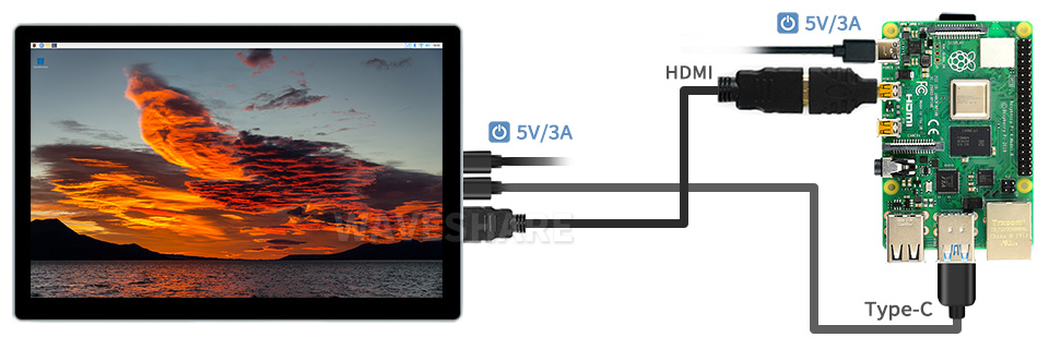 13.3inch HDMI LCD (H) (带外壳) V2 1920×1080 HDMI/VGA IPS 178° 电容 USB 钢化玻璃 -