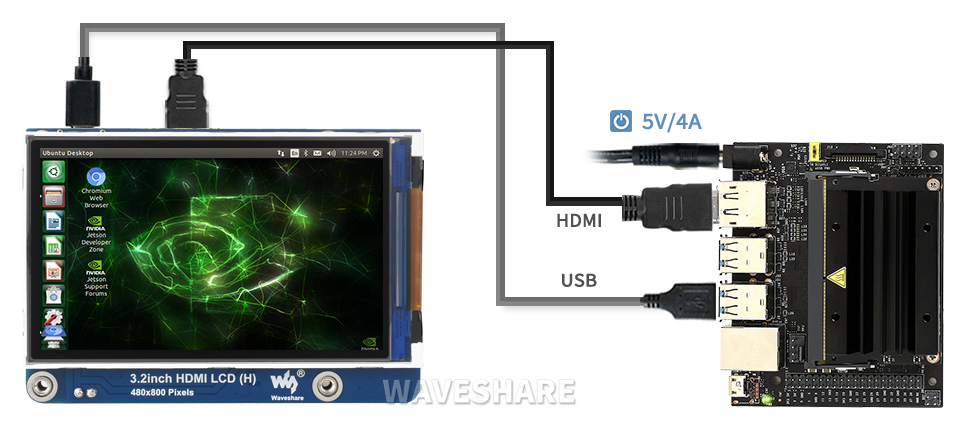 | 5inch HDMI LCD (带外壳) | 800×480 | HDMI | TFT | - | 电阻 | SPI | - | - | - | - | √ | - | - |