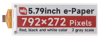 | 5.79inch e-Paper (B) | 红、黑、白 | 2 | 792×272 | 139.00 × 47.74 | 150.92 × 56.94 × 1.00 | 24 | - | - | SPI |