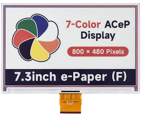 | 7.3inch e-Paper (F) | 7彩色 | 2 | 800×480 | 160.00 × 96.00 | 170.20 × 111.20 × 0.91 | 35 | - | - | SPI |