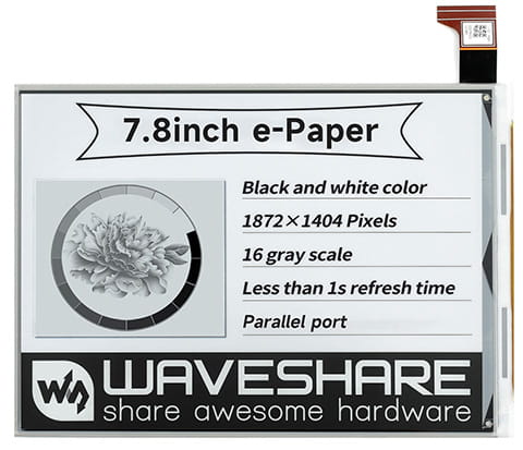 | 7.8inch e-Paper | 黑、白 | 16 | 1872×1404 | 158.18 × 118.64 | 173.80 × 127.60 × 0.78 | <1 | √ | - | 并口 |