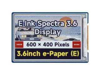 | 3.6inch e-Paper HAT+ (E) | E6全彩色 | 2 | 600×400 | 76.20 × 50.80 | 89.50 × 59.00 | 15 | - | √ | - | SPI |