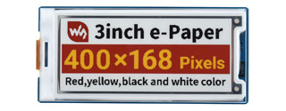 | 3inch e-Paper Module (G) | 红、黄、黑、白 | 2 | 400×168 | 70.40 × 29.568 | 88.5 × 41 | 12 | - | - | - | SPI |
