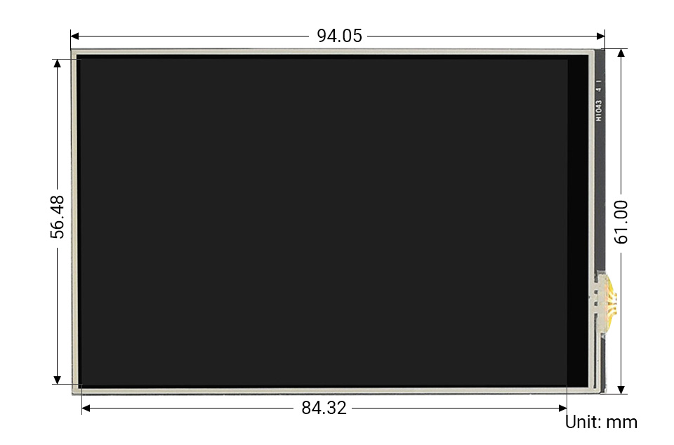 4.3inch DSI LCD 800×480 DSI IPS 160° 电容 I2C 钢化玻璃 - - - - -