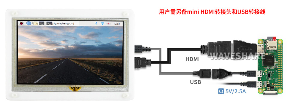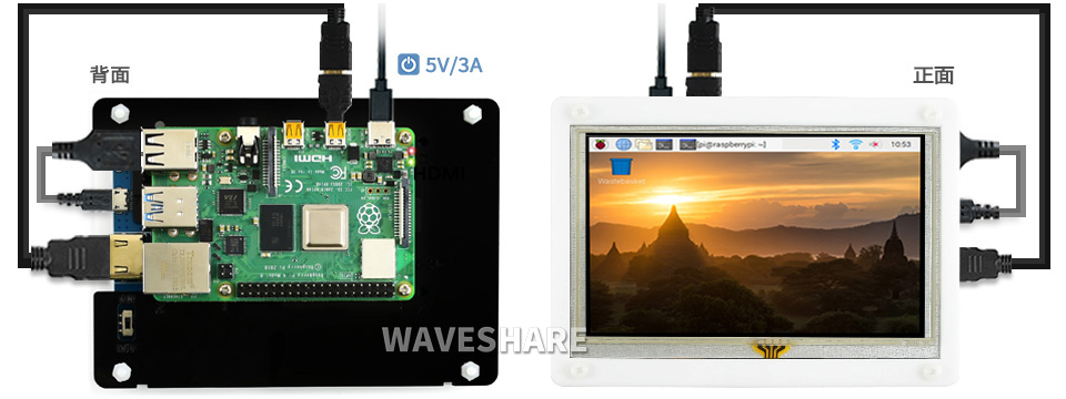 | 5inch HDMI LCD (带外壳) | 800×480 | HDMI | TFT | - | 电阻 | SPI | - | - | - | - | √ | - | - |