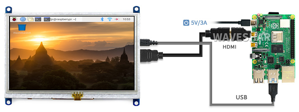 | 5inch HDMI LCD (B) (带外壳) | 800×480 | HDMI | TFT | - | 电阻 | USB | - | - | - | - | √ | - | √ |