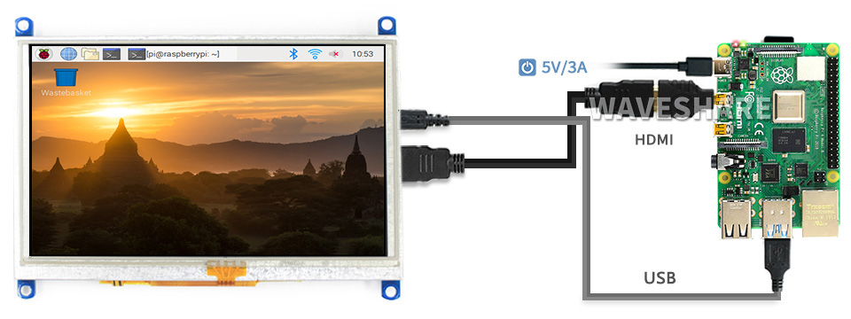 | 5inch HDMI LCD (B) (带外壳) | 800×480 | HDMI | TFT | - | 电阻 | USB | - | - | - | - | √ | - | √ |