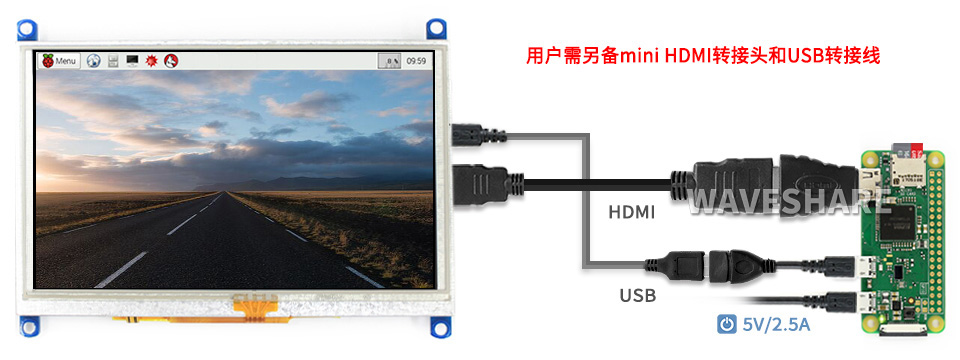 | 5inch HDMI LCD (带外壳) | 800×480 | HDMI | TFT | - | 电阻 | SPI | - | - | - | - | √ | - | - |