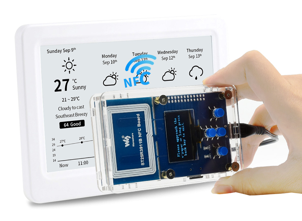 | 2.7inch NFC-Powered e-Paper Module | 黑、白 | 264 × 176 | 57.29 × 38.19 | 84.50 × 47.50 | 6s | √ | × |