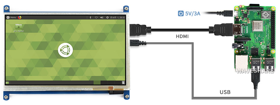 | 4.3inch HDMI LCD (B) | 800×480 | HDMI | IPS | 160° | 电容 | USB | - | - | - | √ | √ | √ | √ |