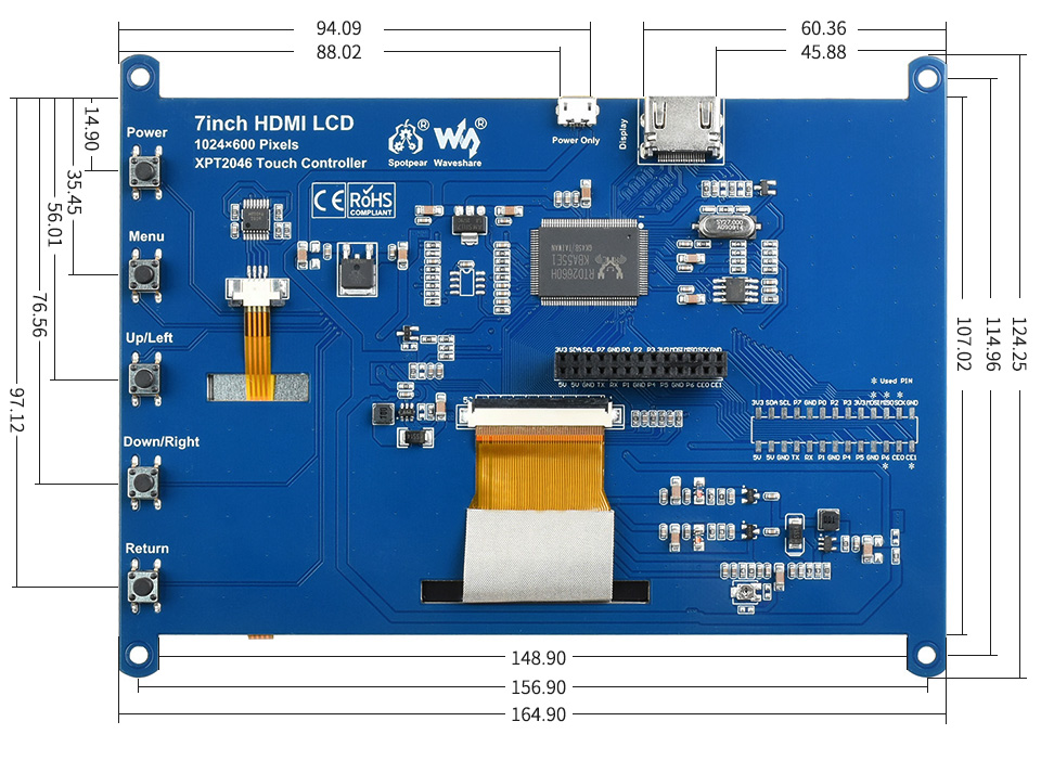 | 5inch HDMI LCD (B) | 800×480 | HDMI | TFT | 160 | 电阻 | USB | - | - | - | - | √ | - | √ |
