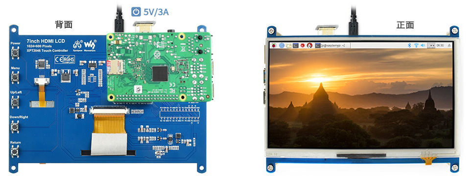 | 5inch HDMI LCD (B) (带外壳) | 800×480 | HDMI | TFT | - | 电阻 | USB | - | - | - | - | √ | - | √ |