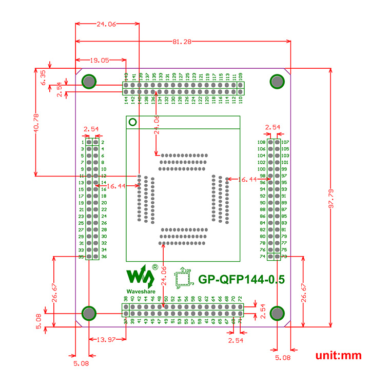 | 适用型号 | QFP144/TQFP144/LQFP144,引脚间距0.5mm |