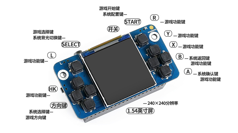 树莓派迷你游戏机扩展板 1.54寸显示屏 口袋游戏机
