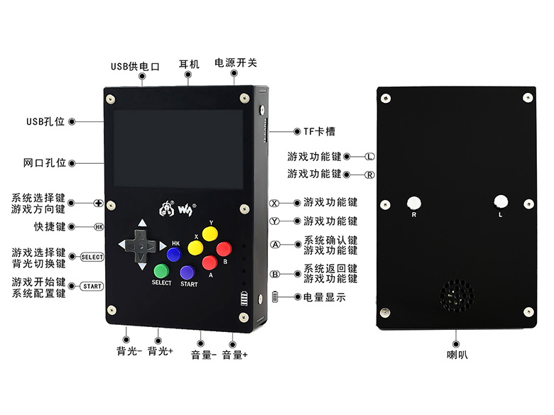 | GamePi43 | 4.3寸IPS显示屏,800×480分辨率 | 带树莓派3B+,到手即玩 |