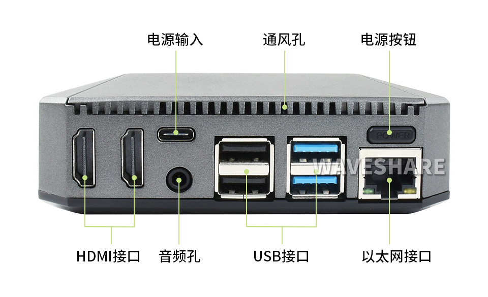 设计有电源按钮,结合软件脚本可在确保文件正常存储的情况下安全地开关机,