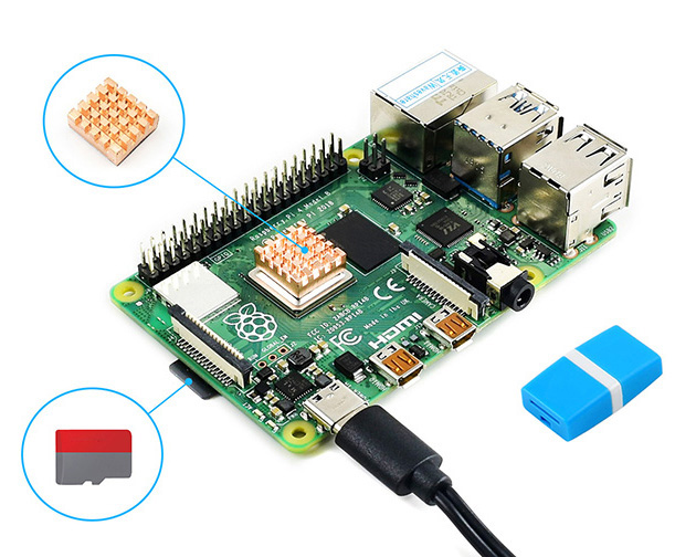 树莓派4代B入门套餐 含Pi4B-2GB 16G SD卡 散热片 电源等