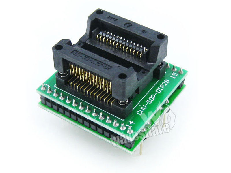 | 特点 | SOP28转DIP28,底板引出为双列直插排针,引脚间距2.54mm(100mil),宽度1.52cm(600mil) |
