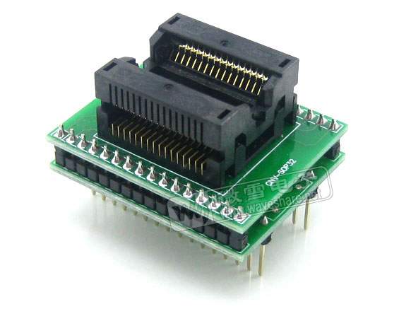 | 特点 | SOP32转DIP32,底板引出为双列直插排针,引脚间距2.54mm(100mil),宽度1.52cm(600mil) |