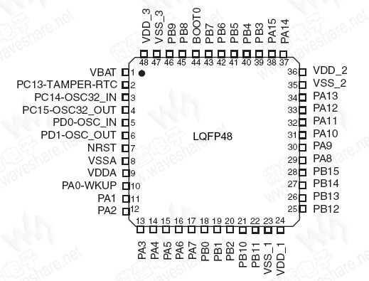 The STM32F103C8 performance line microcontroller incorporates the highperformance ARM Cortex™-M3 32-bit RISC core operating at a 72 MHz frequency, highspeed embedded memories (Flash memory of 64 Kbytes and SRAM up to 20 Kbytes), and an extensive range of enhanced I/Os and peripherals connected to two APB buses. The STM32F103C8 offers two 12-bit ADCs, three general purpose 16-bit timers plus one PWM timer, as well as standard and advanced communication interfaces: up to two I2Cs and SPIs, three USARTs, an USB and a CAN.