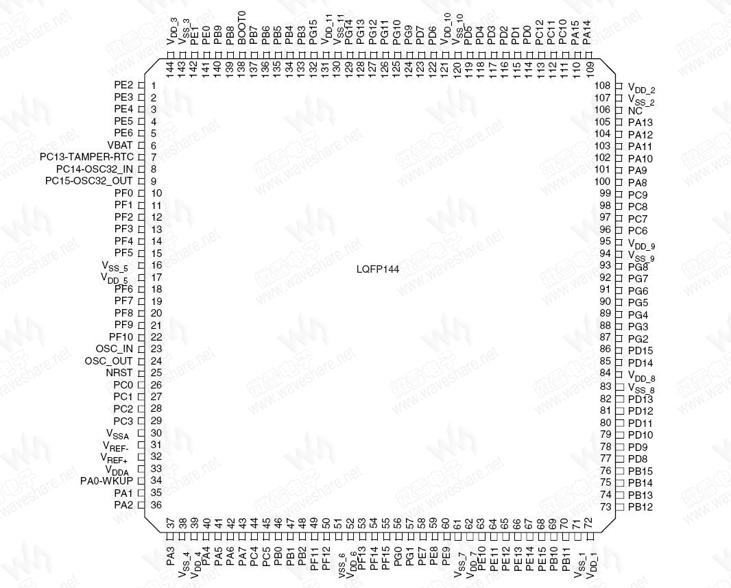STM32F103ZE 概述The STM32F103ZE performance line microcontroller incorporates the high-performance ARM® Cortex™-M3 32-bit RISC core operating at a 72 MHz frequency, high-speed embedded memories (Flash memory up to 512 Kbytes and SRAM up to 64 Kbytes), and an extensive range of enhanced I/Os and peripherals connected to two APB buses. The STM32F103ZE offers three 12-bit ADCs, four general-purpose 16- bit timers plus two PWM timers, as well as standard and advanced communication interfaces: up to two I2Cs, three SPIs, two I2Ss, one SDIO, five USARTs, an USB and a CAN. The STM32F103ZE high-density performance line microcontroller operates in the –40 to +105 °C temperature range, from a 2.0 to 3.6 V power supply. A comprehensive set of power-saving mode allows the design of low-power applications. STM32F103ZE 应用 |