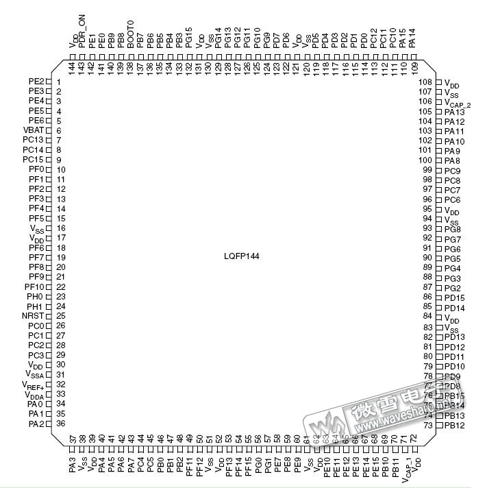 | 通信接口 | 3xSPI;2xI2S;2xI2C; 4xUSART;2xUART 2xUSB OTG (FS+FS/HS); 2xCAN;1xSDIO; Ethernet MAC10/100 |