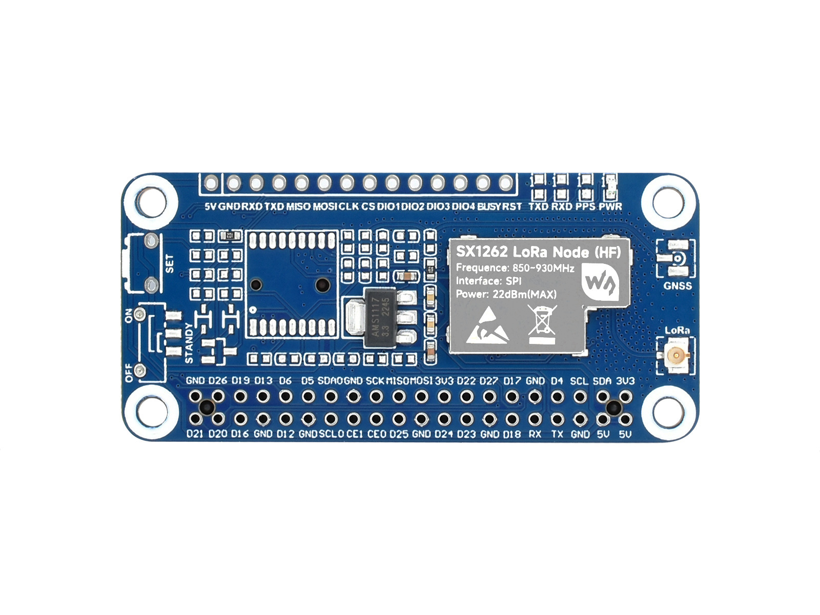 SX1262 868/915M LoRaWAN节点模块扩展板 树莓派LoRaWAN扩展板 带吸盘天线